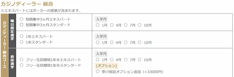 日本カジノスクールの入学金は最低でも55,000円からとなっています。